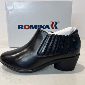 ROMIKA NEW Daisy Black Leather Slip On Booties Shoes Heeled Boho Eu 37 US 6-6.5
