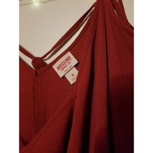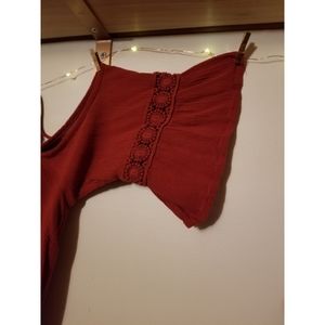 This bohemian romper is perfect for spring, summer, or fall! It's the perfect fit with a extra tie in the back! Only worn a couple times! The color is more burnt orange.
