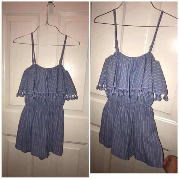 It a blue and white stripped romper. It really cute to wear to the beach. Wish I could still wear it with pom pom on top.