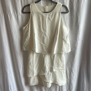 WHITE ROMPER WITH BUILT IN SHORTS. NEVER WORN.