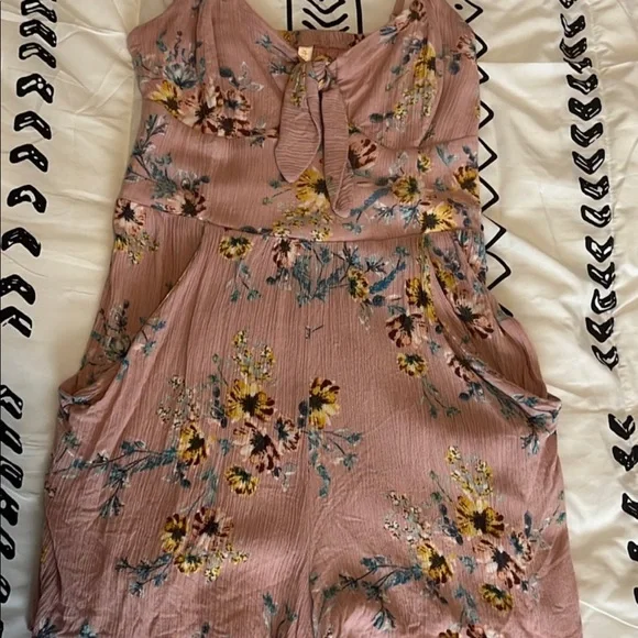 Xhilaration romper, pink floral, with pockets!, adjustable straps, xs