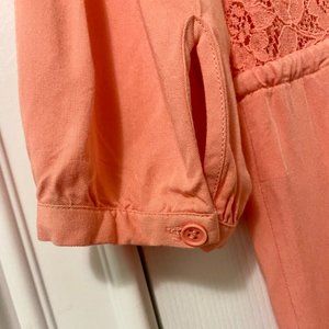 JUSTFAB ROMPER: Lightweight\size Medium\ Lace on Back\Button Front\Drawstring\Relaxed Fit