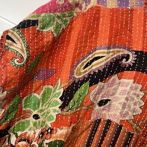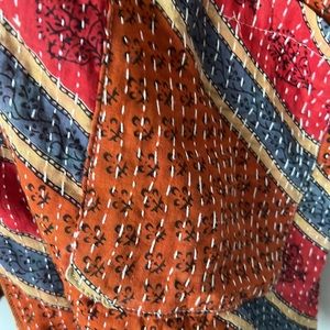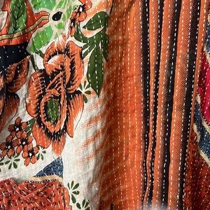 Disclosure: Our vintage styles have lived a full life before becoming the designs in our shop. Fabrics may have small threads or holes in the layers. Color inconsistency or small stains may be present. The saris are sewn together and extend the life of each design. Imperfections should be celebrated.