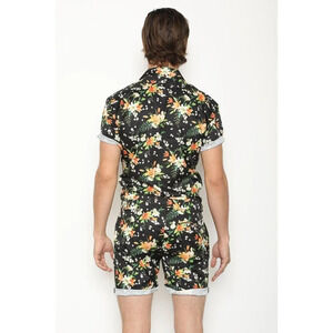 ROMPER JACK Tropical Black Orange Floral Size Small Male Romper
