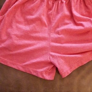 Ruffled strapless sleeveless ROMPER elasticized waist and top side pockets pinky orange color size not clearly marked, but it's a S.
