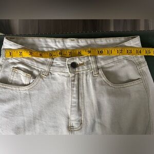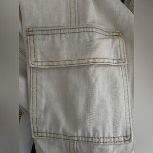 Womens Cargo Pants High Waisted Baggy Y2K Wide Leg Cargo Jeans with Side Flap Pockets Stretch Trousers Loose Pants - cream - off white color - tan stitching