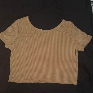 Stylish brown ribbed crop top. Perfect for casual outings. Soft fabric.