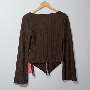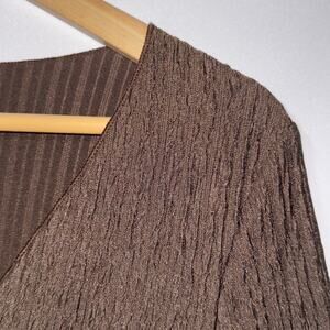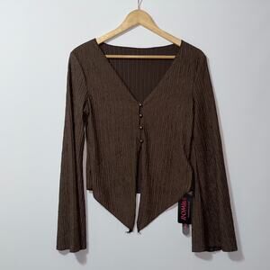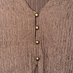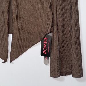 ROMWE Brown Textured Long Sleeve Button Up Blouse women’s Size Medium(6)