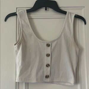 ROMWE Cream Ribbed Crop Tank Top