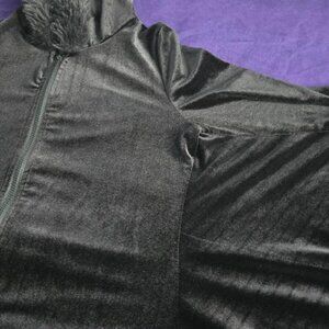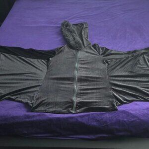 ROMWE PUNK Zip Up Fuzzy Trim Hooded Velvet Bat Shaped Coat