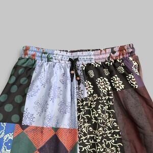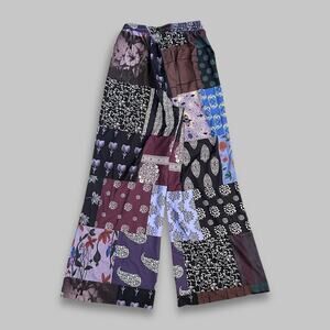 ROMWE Patchwork Boho Wide Leg Pants Women’s Size L – Multicolor Floral & Abstract