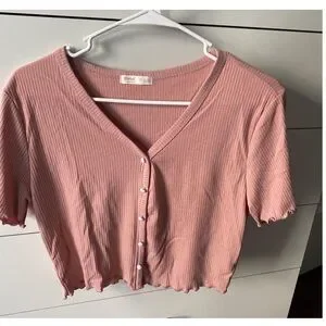 Chic ribbed design with button-down front. Soft and stylish for any occasion.