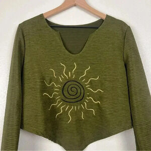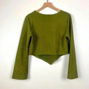 ROMWE Olive green Long bell flare sleeves Crop top Pointed front