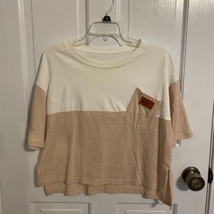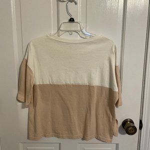 ROMWE two tone step hem tee, white & beige, 95% cotton