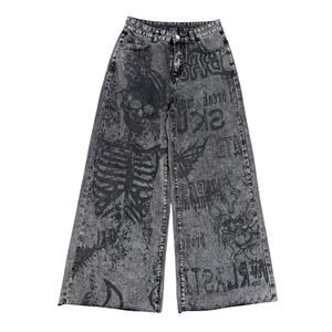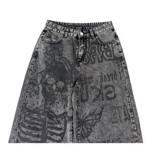 Make a statement in these black acid - wash wide-leg graphic jeans, the perfect mix of punk edge and streetwear cool. Featuring bold tattoo-inspired prints, a relaxed oversized fit, and sturdy denim construction, these pants are made for self-expression.