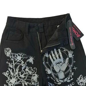 ROMWE Women’s Grafitti Print Wide Leg Ankle Jeans Size 2 Casual Distressed Retro