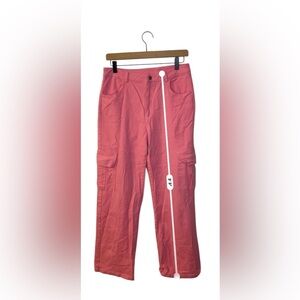 Stylish straight leg jeans. Features a vibrant pink color. Comfortable fit with side pockets.
