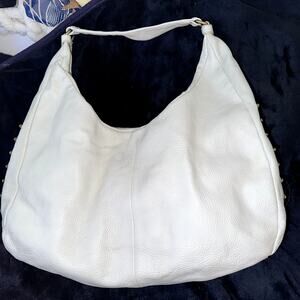 ROMYGOLD HUGE $595 PEBBLED WHITE LEATHER BAG BRASS HARDWARE595
