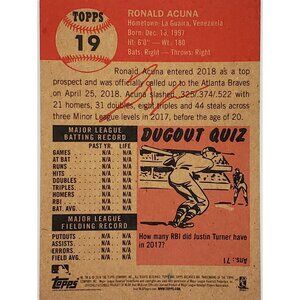 RONALD ACUNA JR ROOKIE "LIVING" 2018 TOPPS LIVING #19, ATLANTA BRAVES, MVP, ROY!