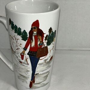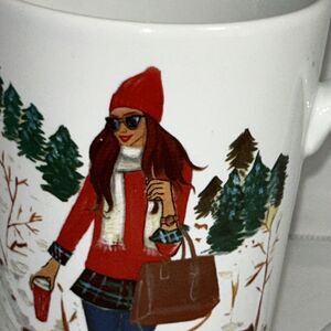 RONGRONG FASHION GIRL IN WINTER/MOUNTAINS 6 Tall. Dishwasher & Microwave Safe