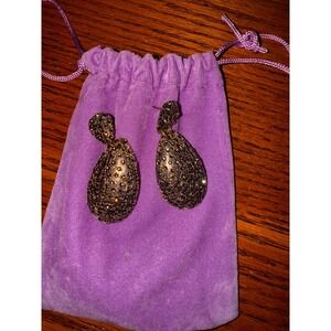 Roni Blanshay Large Drop with Golden Shadow Mesh Earring. These earrings are one of Sally's favorites. They are lightweight, and yet they make a huge statement. They measure approximately 2 1/2" long. Beautiful golden hue, perfect for any hair color but especially blondes. These earrings remind us of bubbles rising to the top of a glass of champagne. Elegant and FUN.