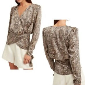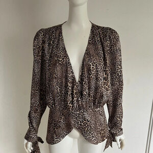 RONNY KOBO CROSELLA LEOPARD PRINT WRAP FRONT LONG SLEEVE BLOUSE SZ M