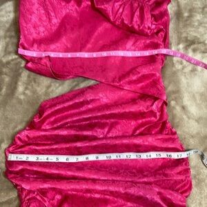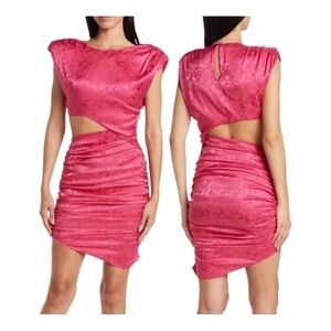 RONNY KOBO Kyle Asymmetric Cutout Dress Hot Pink Paisley Ruched Mini