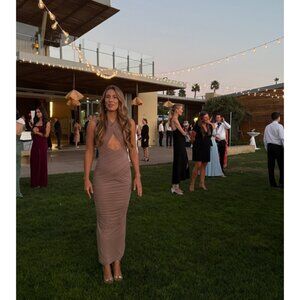 RONNY KOBO Nasha Maxi Dress in Taupe Size Small