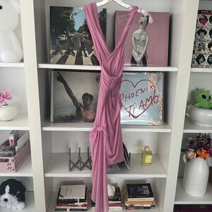 RONNY KOBO Pink Izel Asymmetric Twisted Mini Dress