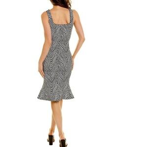 Lucious stretchy and flattering black and white dress from Ronny Kobo. This dress is double lined and stretchy so it is so comfortable and flattering. Square neckline and wide straps to top it off and make it so wearable. Flounce hem.
