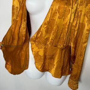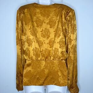 RONNY KOBO Top Silk Satin Mustard Yellow Gold Floral Holiday Office