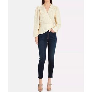 RONNY KOBO Zebra Jacquard Silk Wrap Top Blouse Ivory NEW