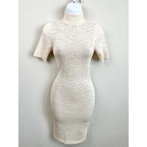 RONNY Kobo Cream Bodycon Knit Mini Dress Mock Neck Women's XS Party Cocktail