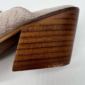 ROOLEE Helen Textured Mule in White Smoke. Wood tone heels and snake skin texture. Comfortable and stylish. Small flaw in heel (see photo)