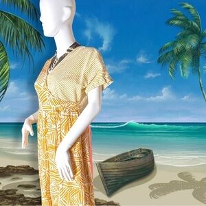 ROOLEE Tropical Boho Faux Wrap Top Dress Size Small