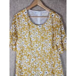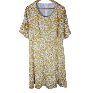 ROOLEE Yellow Floral Print Boho Bright Cheery Flutter Sleeve Midi Dress SZ XL