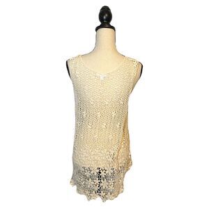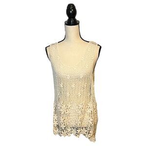 ROOMMATES Women’s Small White Floral Crochet Sleeveless Top Boho Beach Resort