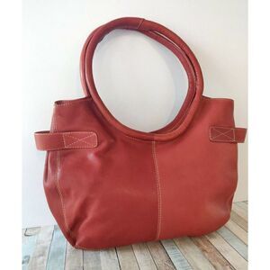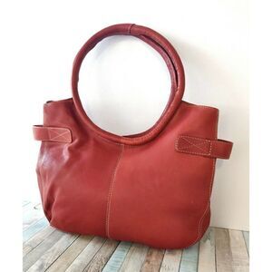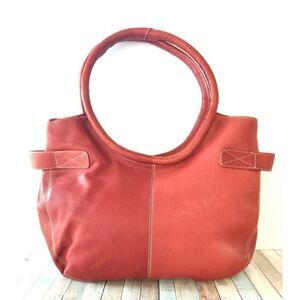 ROOMY CHAUS MUTED RED GENUINE LEATHER ROUND HANDLES HOBO SHOULDER BAG HANDBAG