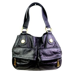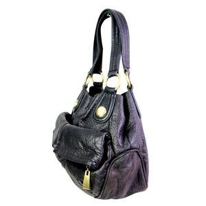 ROOMY Cynthia Rowley BLACK GENUINE LEATHER LOGO TOTE SHOULDER BAG HANDBAG PURSE