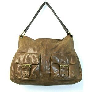 ROOMY Nino Bossi TAN BROWN GENUINE LEATHER ZIP TOP SHOULDER BAG HANDBAG PURSE