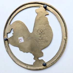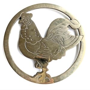 ROOSTER Solid Brass Vintage Trivet Golden Retro Potholder Farmhouse New