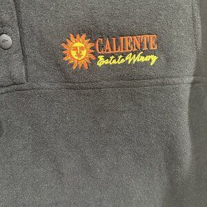 It is machine washable and made with fleece fabric type, making it perfect for all seasons. The black color, regular fit, and hoodie style make it a versatile piece that can be worn on different occasions. This jacket is from the Paddlecreek Roots73 collection and features embroidery from Caliente Estate Winery.