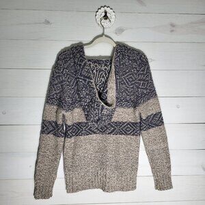 ROOTS CANADA Limited Women Cozy Knit Wool Blend Brown Gray Hooded Sweater.