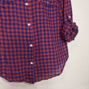 ROOTS CANADA RED/BLUE CHECKERED BUTTON UP LONG SLEEVE LIGHTWEIGHT SHIRT MEDIUM