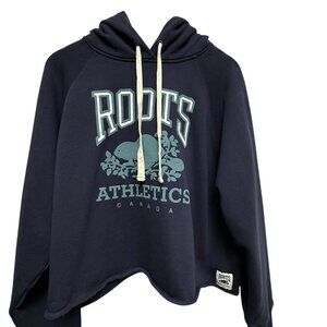 ROOTS Hoodie Large Navy Blue Graphic Roots Athletics Womens Cropped Pullover