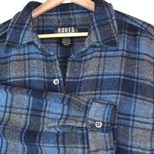 ROOTS Wool Blend Flannel Shirt Jacket Men's Size XL Blue Grey Plaid Rugged