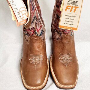 ROPER- Big Kids Girls "MARGO" WESTERN COWBOY BOOTS- Aztec Design- Size: 7Y / 9W