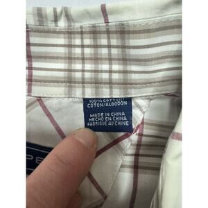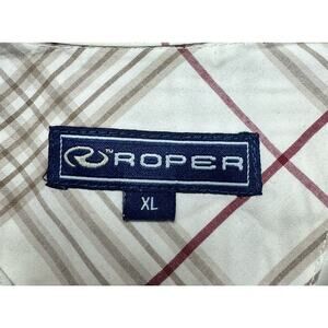 This ROPER shirt is a versatile addition to any wardrobe. With a collared neckline, button closure, and plaid pattern, it's perfect for any occasion - from travel to workwear to parties. The shirt is made of machine washable cotton, making it easy to care for and suitable for all seasons. It also features convenient pockets and long sleeves. The tan and maroon color combination adds a touch of Western style to the shirt, which is part of the Roper product line. The shirt is a regular fit and comes in size XL. It's a button-up type shirt with a button-down collar style. Although it's not handmade or vintage, it's a quality shirt that's made in China. Get this classic shirt now and elevate your style!