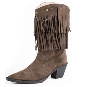 ROPER SHORT STUFF Brown Fringe Faux Suede Brown cowboy boots Women's size 5