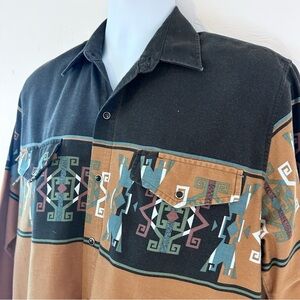 ROPER Vintage 90s Men’s Aztec Print Cowboy Shirt Size M Pearl Snap Button